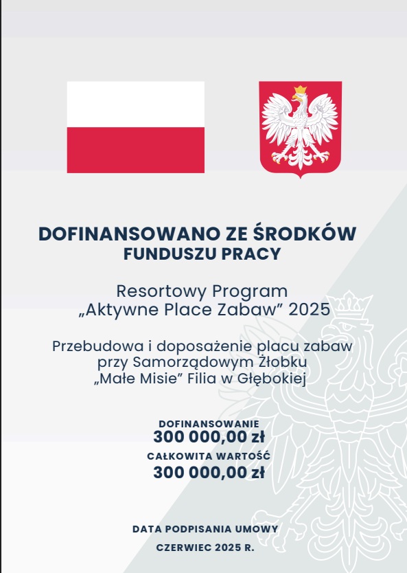 Program "Aktywne Place Zabaw 2025"to inicjatywa Ministerstwa Pracy i Politywki Społecznej, skierowana do gmin prowadzacych żlobki lub kluby dzieicęce, mająca na celu modernizację i doposażenie placów zabaw.